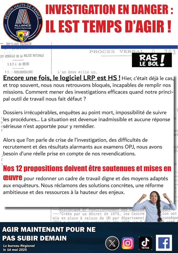 Logiciel LRP HS, 12 propositions d'ALLIANCE Police Nationale doivent être soutenues et mises en œuvre ...