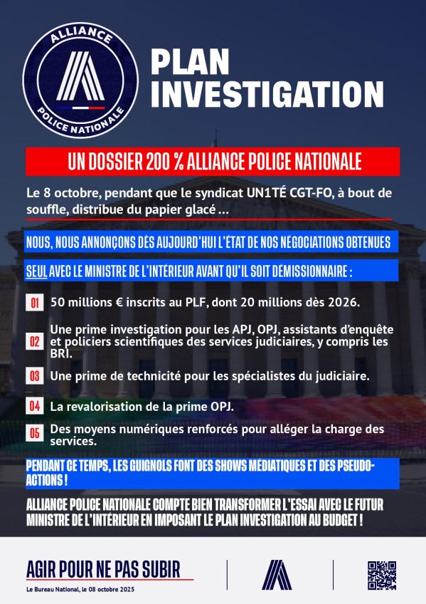 📅 PLAN INVESTIGATION : UN DOSSIER 200 % ALLIANCE POLICE NATIONALE