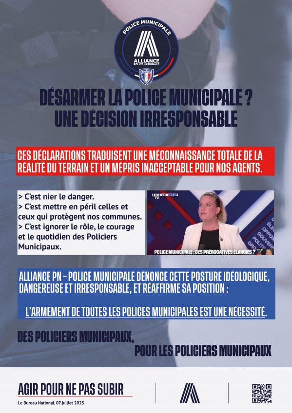 DÉSARMER LA POLICE MUNICIPALE DÉCISION IRRESPONSABLE
